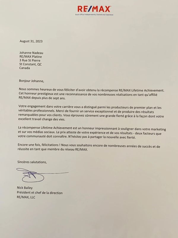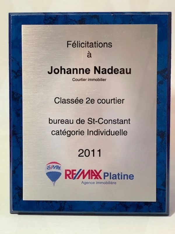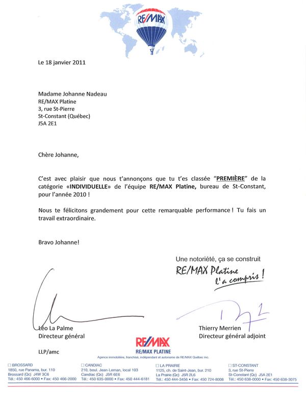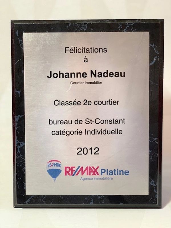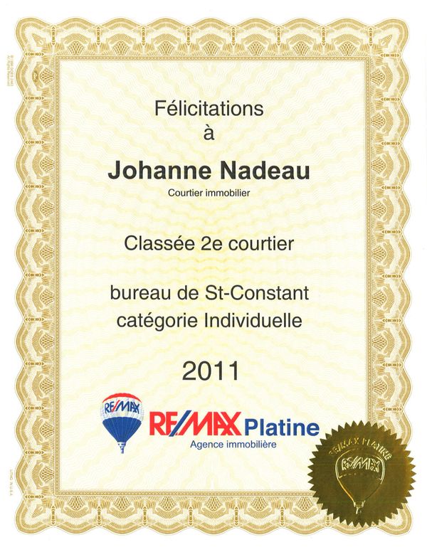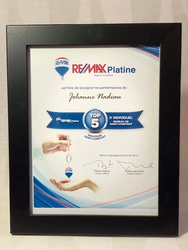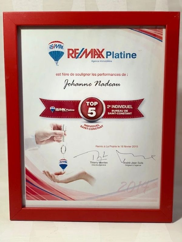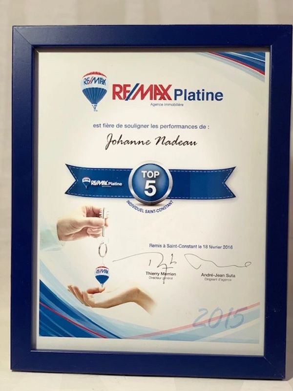 - Courtier immobilier ayant réalisé le plus grand nombre de transaction immobilière au bureau de Remax Platine St-Constant